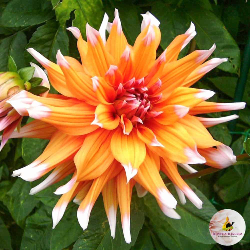 A cactus dahlia has long, pointed petals that curl towards the stem, giving them a spiky appearance. Of course it is named after the pointy cactus. The semi-cactus dahlia have broader petals than the cactus dahlia variety.