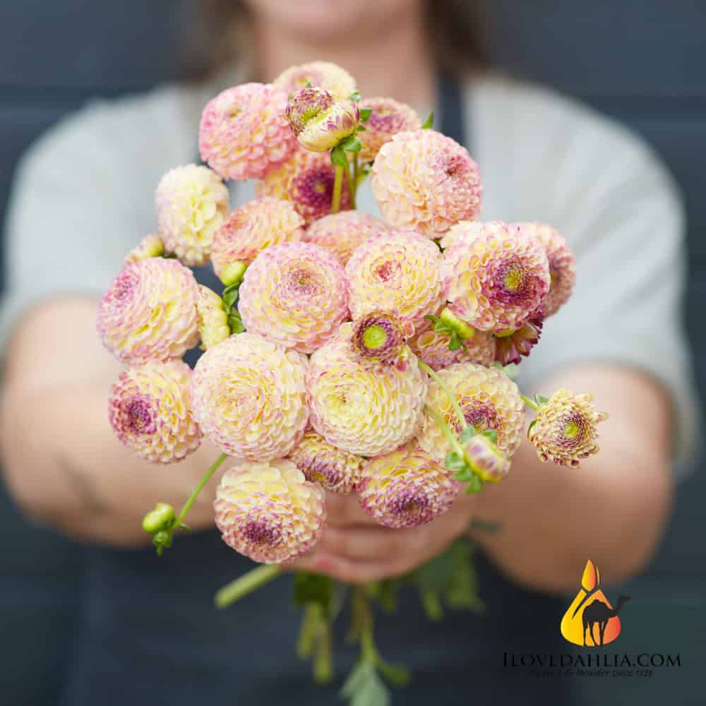 Deze dahlia produceert een overvloed aan bloemen van midden zomer tot de eerste vorst. Plant ‘Hapet Compo’ voor een charmant, snoepachtig accent in je tuinperken en een vleugje vreugde in je interieur.
