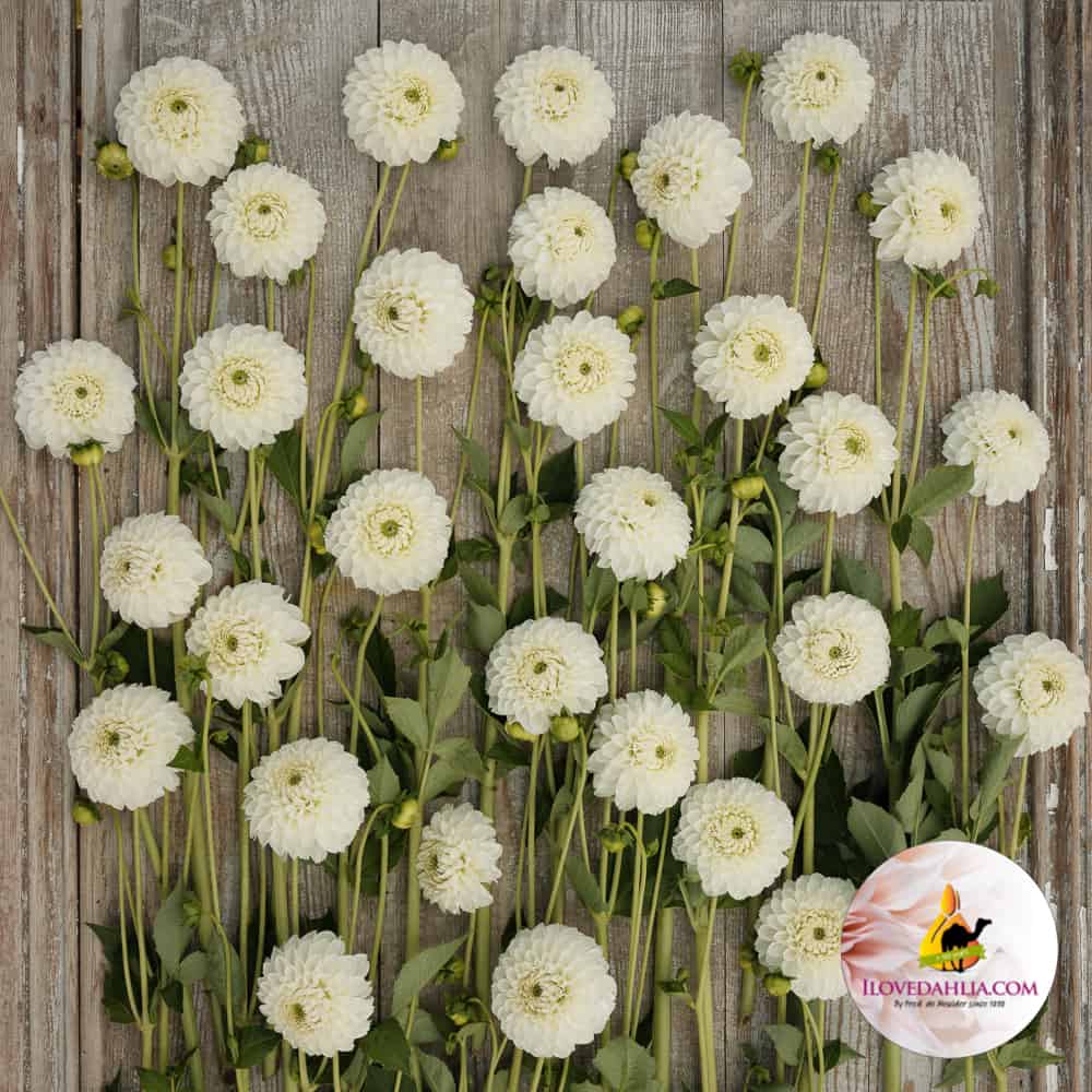 - Zuiver wit: De pure witte kleur van de Ball Dahlia Ice Baby symboliseert zuiverheid, onschuld en elegantie, en creëert een gevoel van sereniteit en verfijning in je bloemstukken.